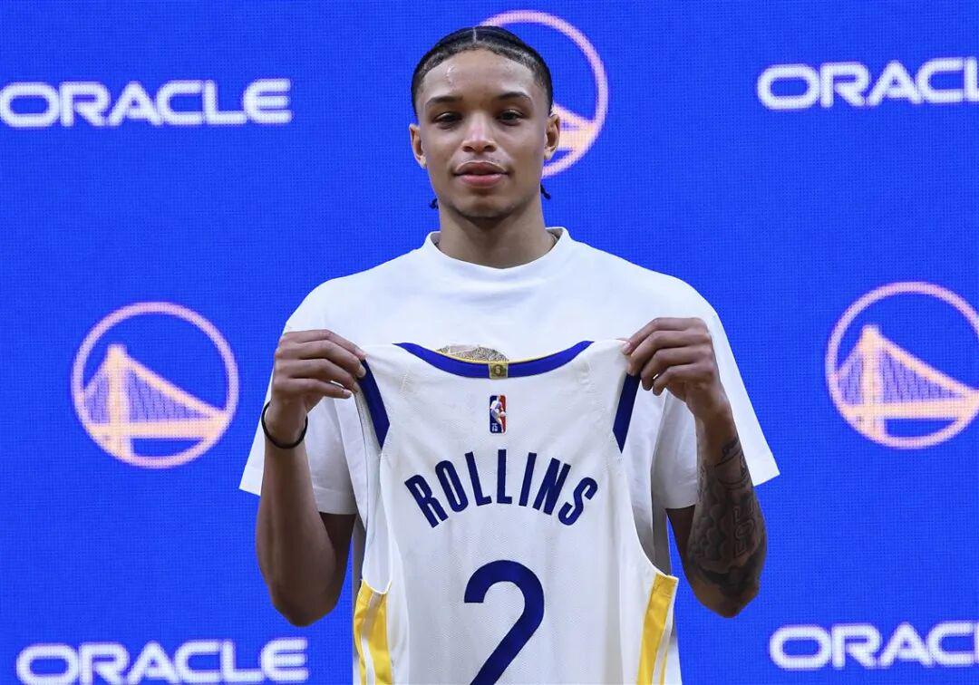 2022年選秀那天,2002年7月3日出生的羅林斯還沒(méi)過(guò)20歲,半成品,小球隊(duì),選他需要很大的勇氣。但恰恰是勇士選了他,而且還為他付出了不小的成本。