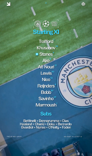 北京時間11月26日凌晨4:00,25/26賽季歐冠聯(lián)賽階段第5輪,曼城坐鎮(zhèn)主場迎戰(zhàn)勒沃庫森,賽前首發(fā)公布。