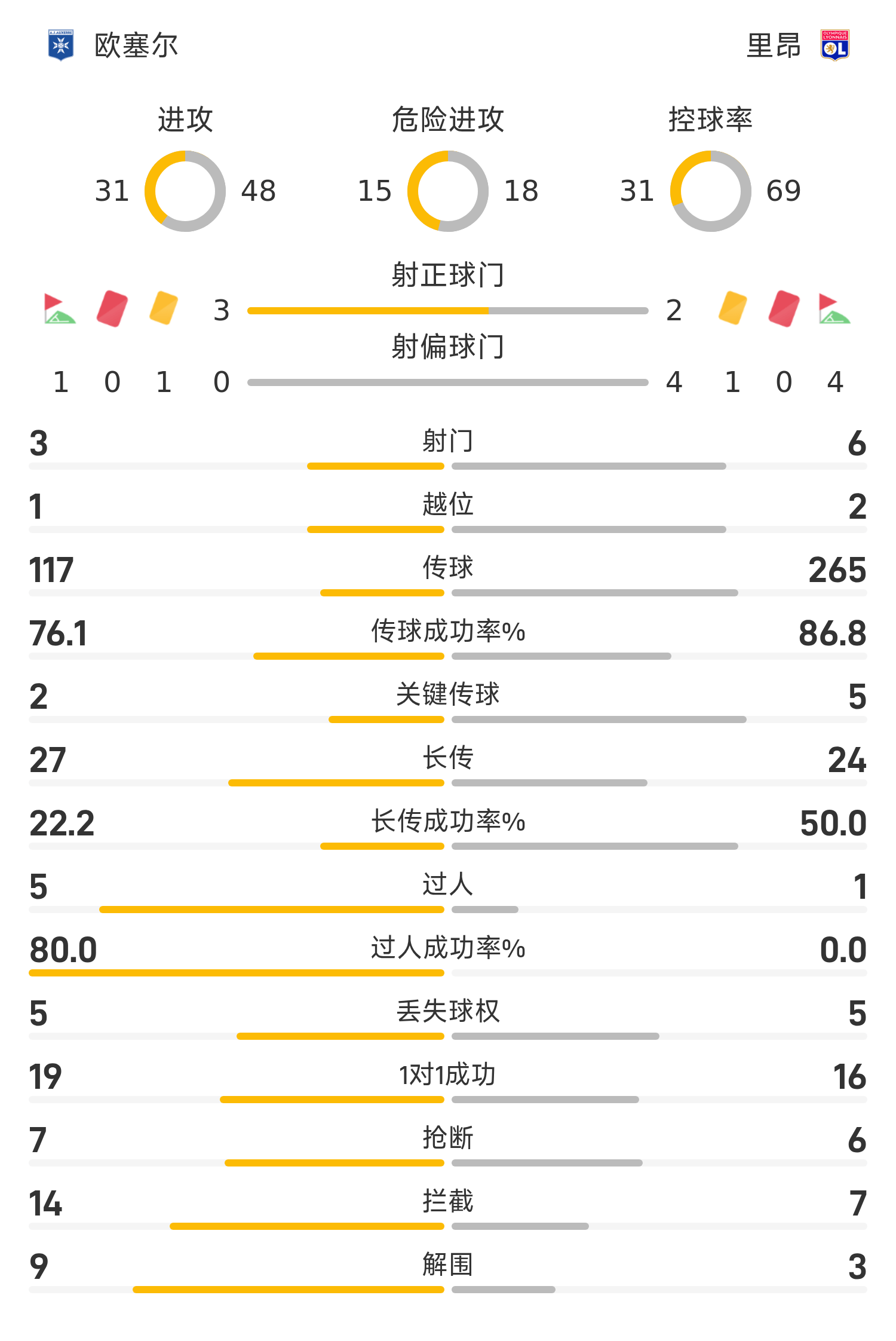 雷速體育11月23日訊 25/26賽季法甲聯(lián)賽第13輪,歐塞爾迎戰(zhàn)里昂。半場戰(zhàn)罷,雙方比分暫為歐塞爾0-0里昂,希納約科失點。