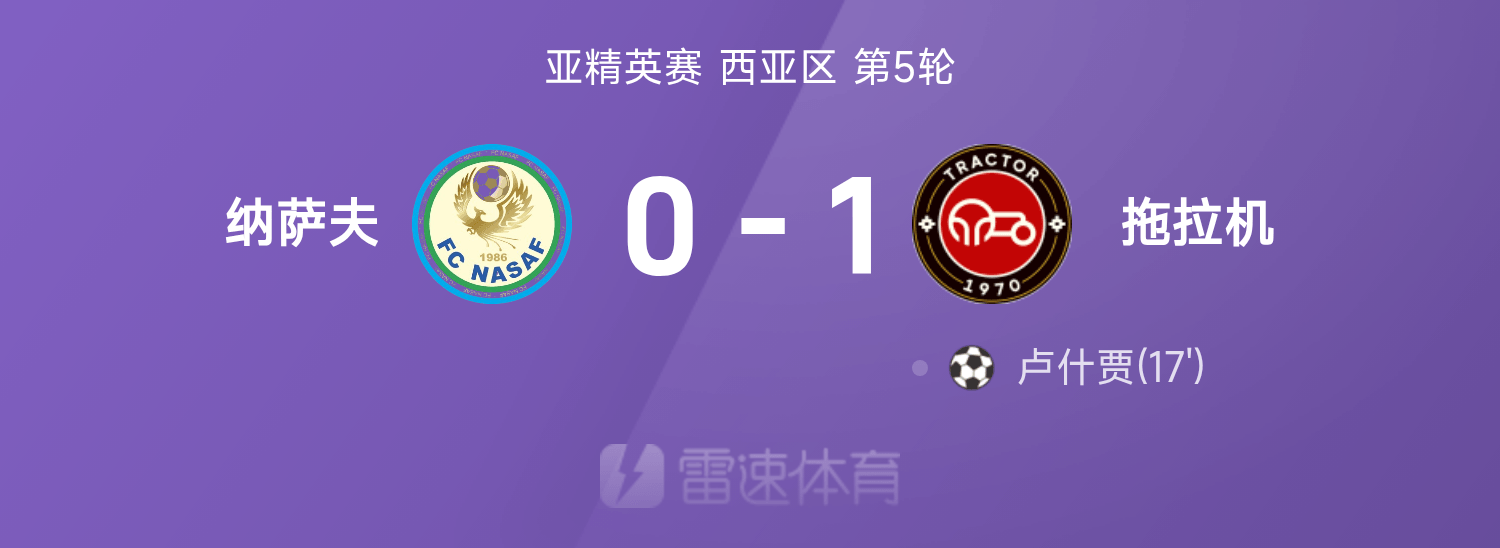 雷速體育11月24日訊 25/26賽季亞精英賽西亞區(qū)第5輪,拖拉機(jī)1-0戰(zhàn)勝納薩夫。全場比賽,盧什賈破門建功。