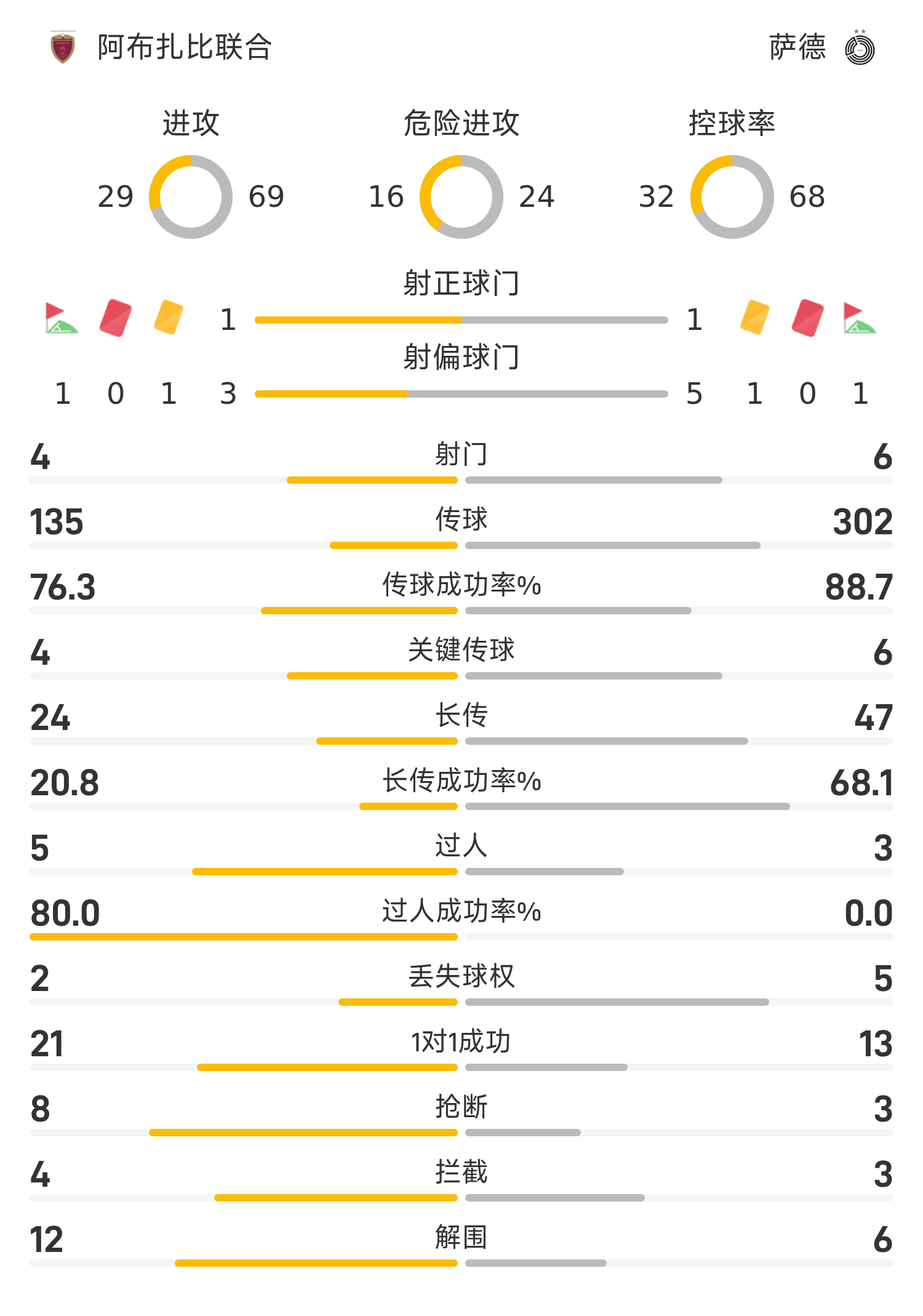 45+3’祖希爾禁區(qū)手球造點,克勞迪諾破門,薩德1-0阿布扎比聯(lián)合