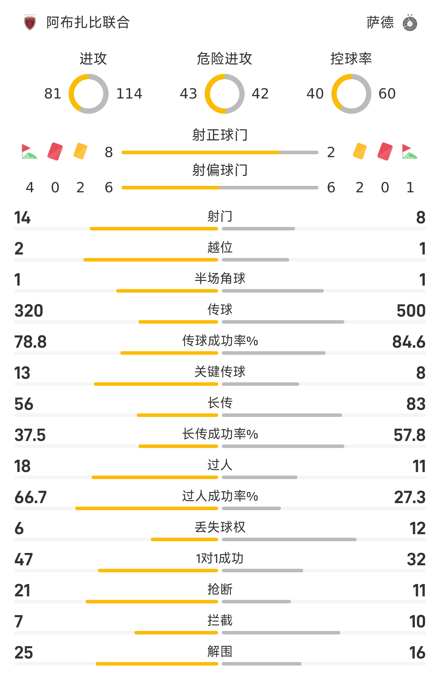 45+3’祖希爾禁區(qū)手球造點(diǎn),克勞迪諾破門,薩德1-0阿布扎比聯(lián)合