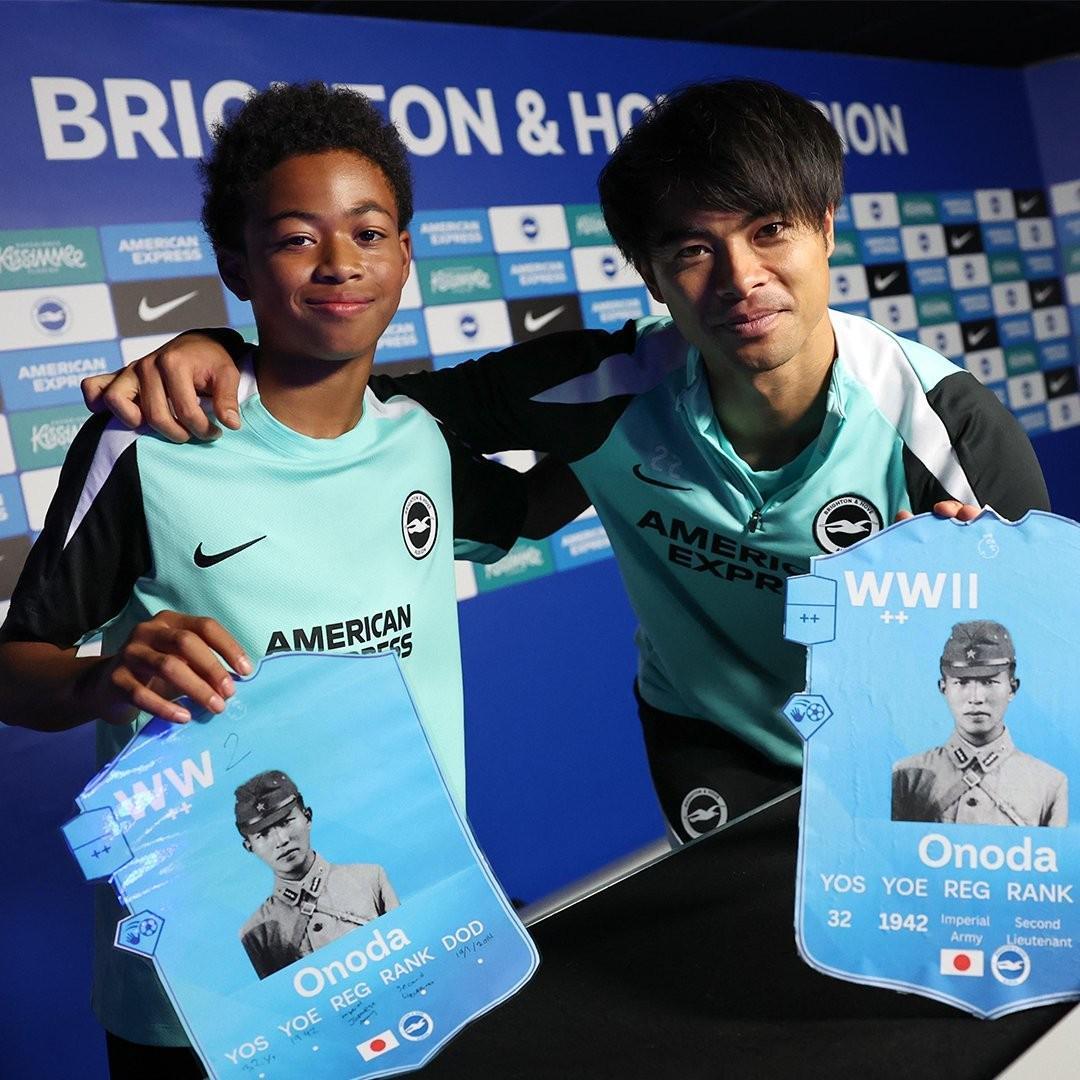 布萊頓青訓(xùn)學(xué)院在社媒平臺(tái)發(fā)布的帖子中,三笘薫與一名青訓(xùn)球員手持印有日本士兵小野田寬郎的定制足球卡,此舉旨在慶祝U12梯隊(duì)贏得該項(xiàng)目資格,晉級(jí)比利時(shí)圣誕休戰(zhàn)杯。
