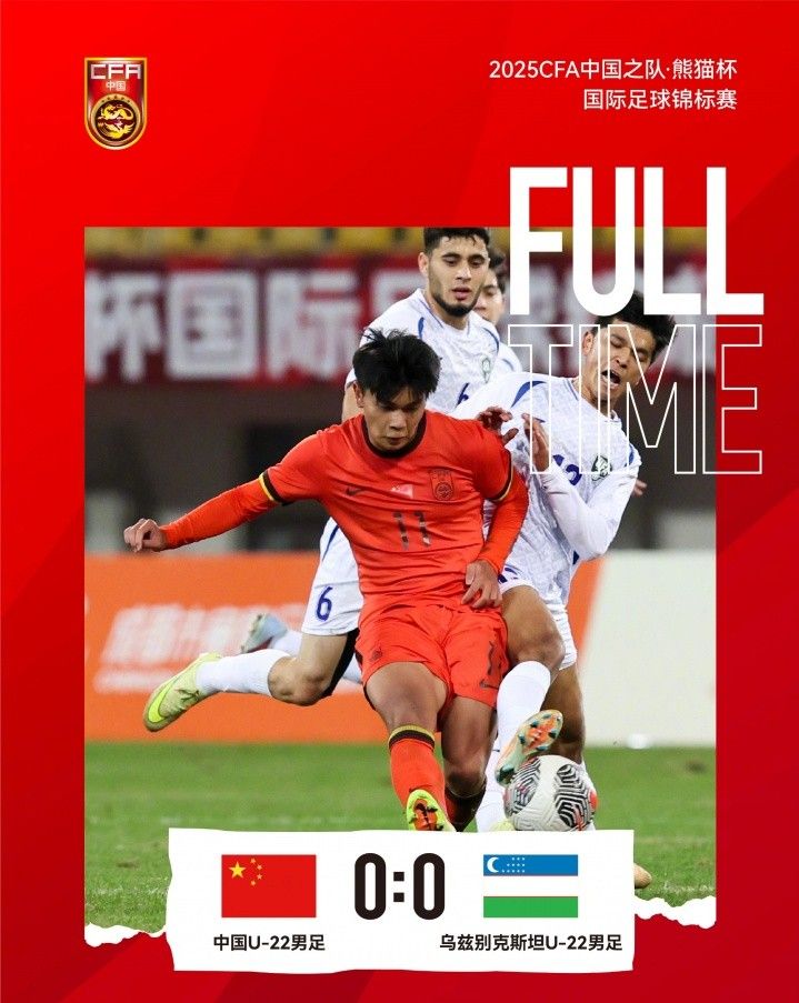 雷速體育11月18日訊 今晚進行的熊貓杯第三輪比賽,中國U22國足0-0戰(zhàn)平烏茲別克斯坦,最終1勝1平1負獲得本屆賽事亞軍。