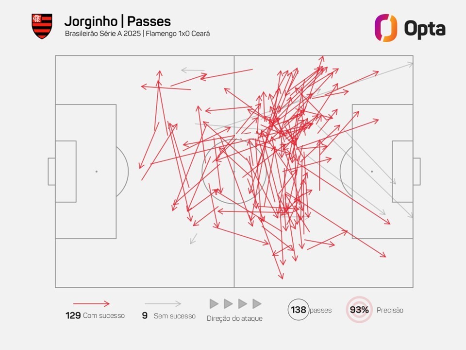 若日尼奧單場完成129次傳球,為本賽季巴甲單場第二高紀(jì)錄