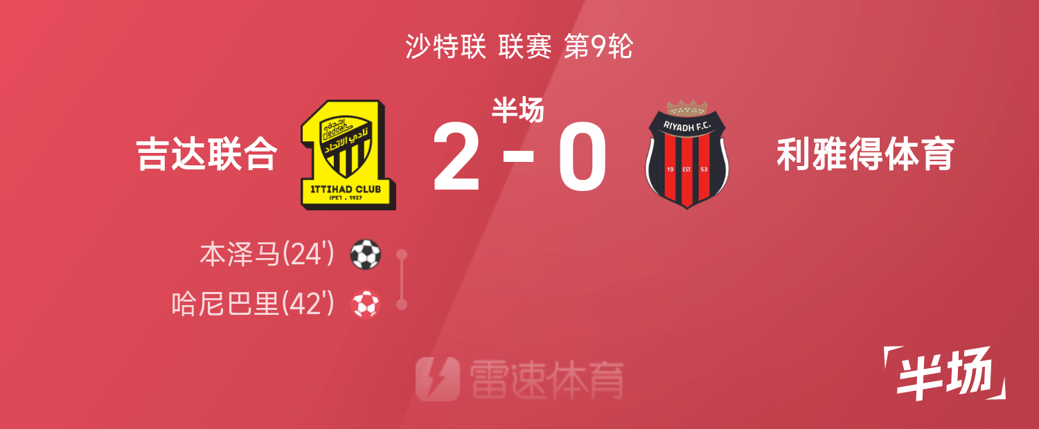 沙特聯(lián)半場:本澤馬破門,吉達聯(lián)合暫2-0利雅得體育