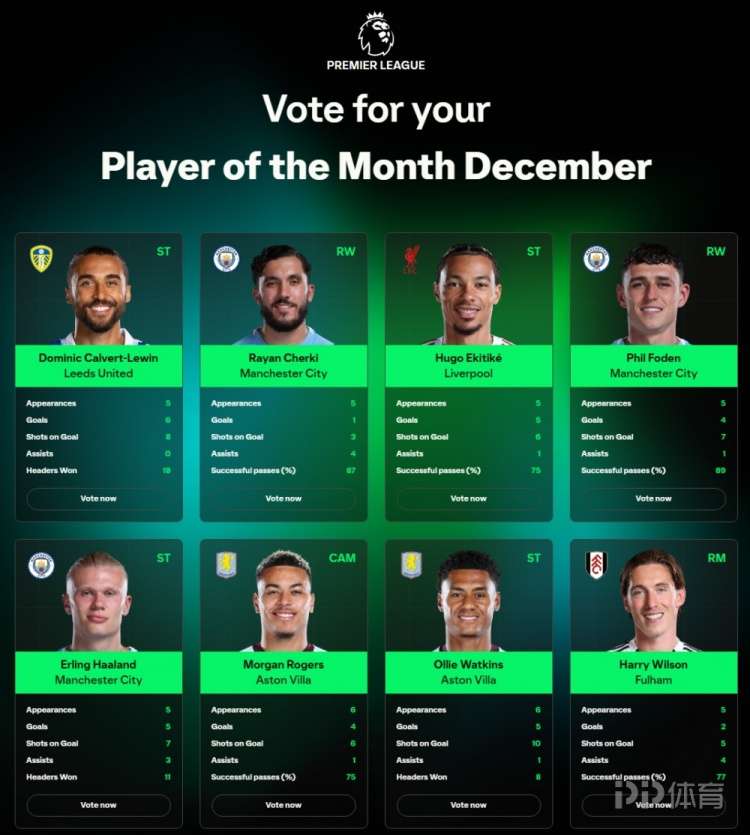 英超12月最佳球員候選:哈蘭德、謝爾基、?;倏恕⒏5窃诹?/p>