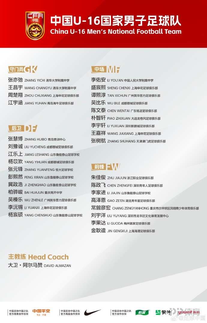 U16國足集訓(xùn)名單:樸智軒、李佑安在列 阿爾馬贊掛帥