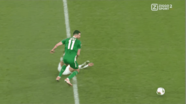 45’帕洛特帶球突入禁區(qū)內(nèi)切射門命中,愛爾蘭2-0葡萄牙