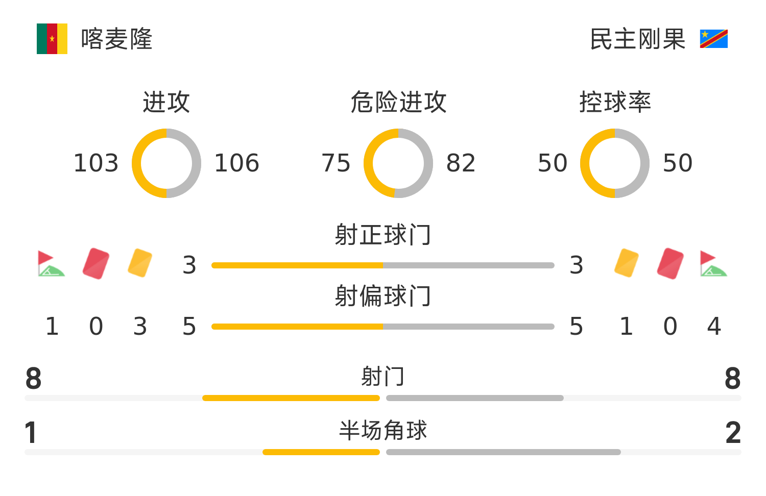 喀麥隆首發(fā)陣容:23-奧納納、21-卡斯特萊托、5-恩加德烏、6-托洛、2-查切阿、17-巴萊巴(46’18-霍格拉)、15-阿沃姆(73’7-恩庫(kù)杜)、3-納吉達(dá)(73’11-巴索戈)、20-姆伯莫、9-馬格里(46’10-阿布巴卡爾)、14-艾永(90’19-恩加馬魯)