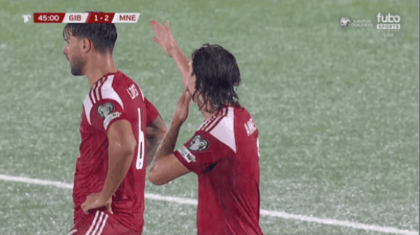 33’阿季奇主罰任意球起右腳推射命中,黑山1-1直布羅陀
