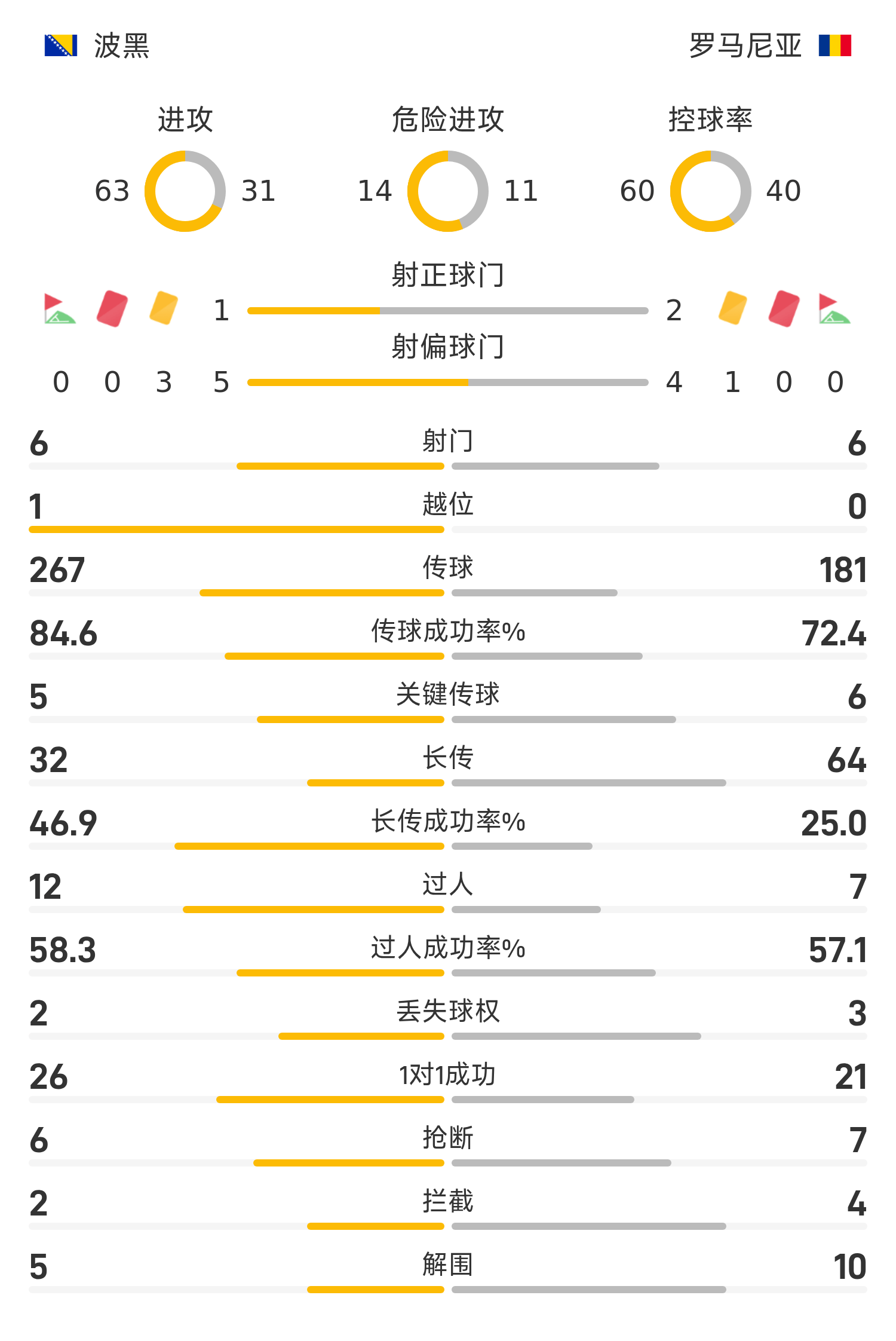 波黑首發(fā)陣容:1-瓦西爾吉、18-卡蒂奇、7-德迪奇、4-穆哈雷莫維奇、23-馬利克、17-布魯諾、15-梅米奇、6-塔希羅維奇、9-巴茲達(dá)、20-巴伊拉塔雷維奇、11-哲科