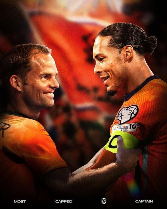 在荷蘭隊(duì)對(duì)陣立陶宛的比賽期間,荷蘭隊(duì)官方賬號(hào)發(fā)布了一段特別視頻,前主帥弗蘭克-德波爾在視頻中向范戴克送上祝賀。范戴克這場(chǎng)比賽第72次佩戴隊(duì)長(zhǎng)袖標(biāo),正式打破德波爾此前保持的隊(duì)史隊(duì)長(zhǎng)出場(chǎng)紀(jì)錄。