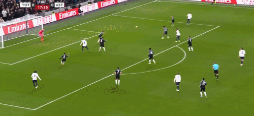 第45+2分鐘,布恩迪亞腳后跟做球,羅杰斯破門,維拉2-0熱刺
