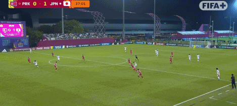 第4分鐘,瀨口大翔傳中,麥吉頭球破門,U17日本1-0朝鮮U17