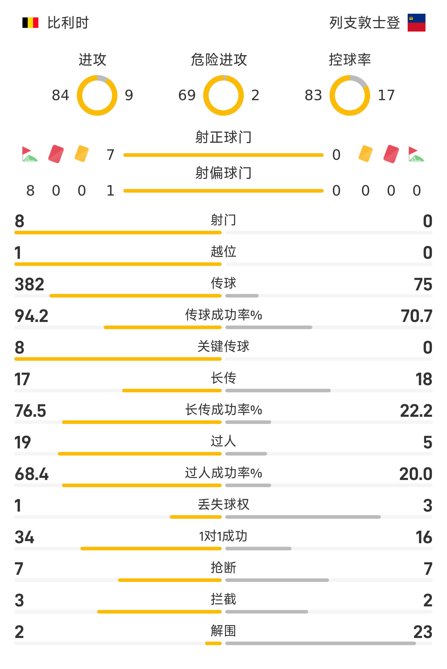 雷速體育11月19日訊 世歐預(yù)分組賽J組第10輪,比利時(shí)主場(chǎng)迎戰(zhàn)列支敦士登。此役上半場(chǎng),范納肯閃擊破門,多庫(kù)禁區(qū)中路迎球掃射破門隨即又帶球突入禁區(qū)抽射再入一球。半場(chǎng)戰(zhàn)罷,比利時(shí)3-0列支敦士登。