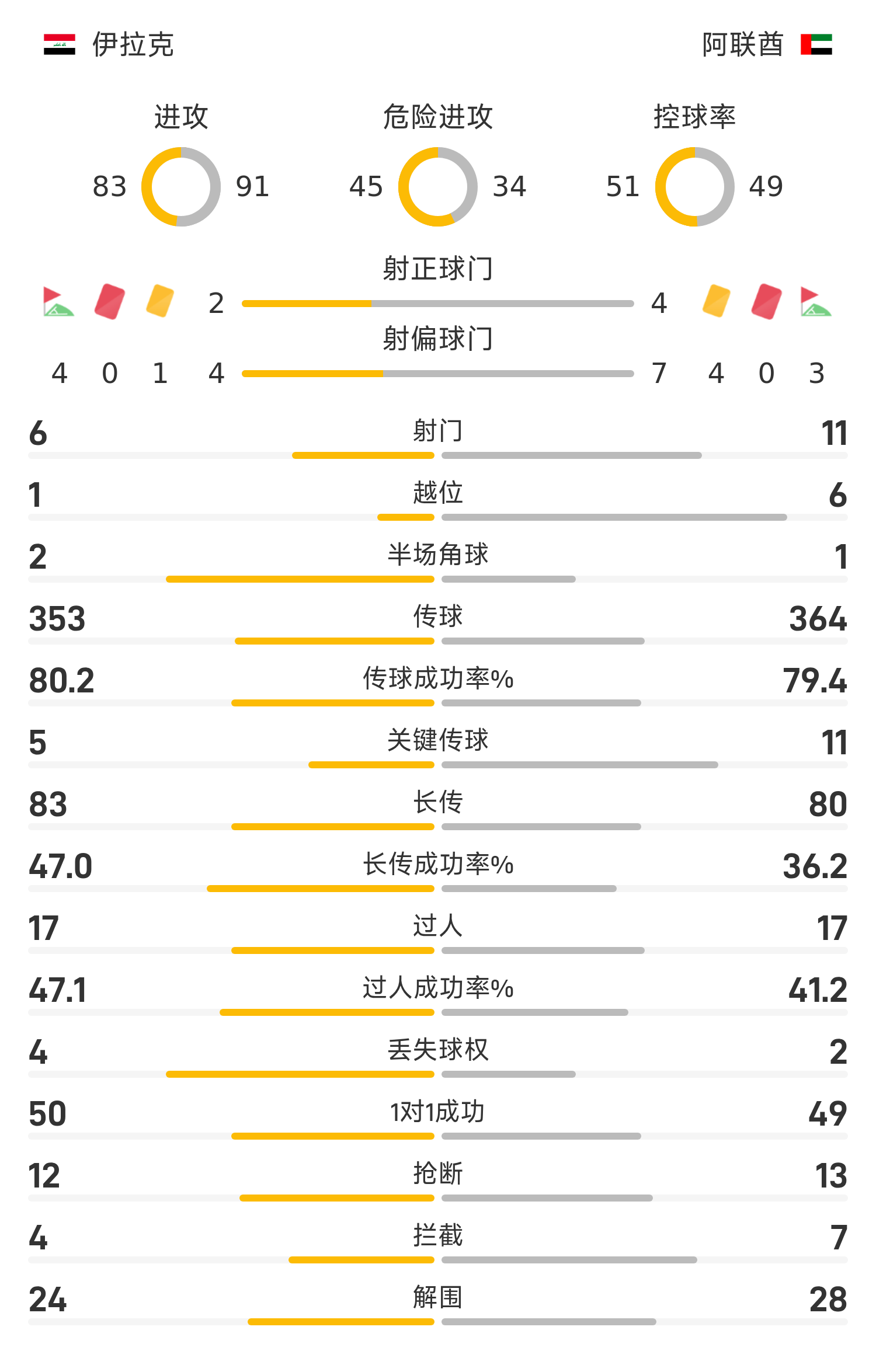 52’盧卡斯單刀破門,伊拉克0-1阿聯(lián)酋