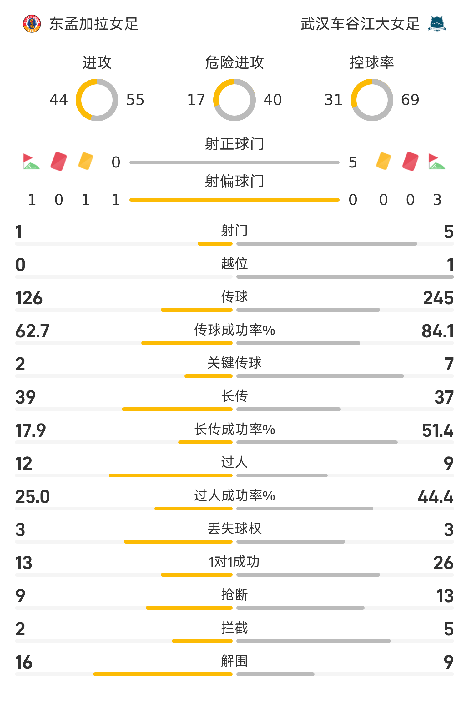 雷速體育11月20日訊 25/26賽季女亞冠聯(lián)小組賽B組第2輪,東孟加拉女足迎戰(zhàn)武漢車谷江大女足。半場戰(zhàn)罷,雙方比分暫為東孟加拉女足0-2武漢車谷江大女足,王霜上演梅開二度。