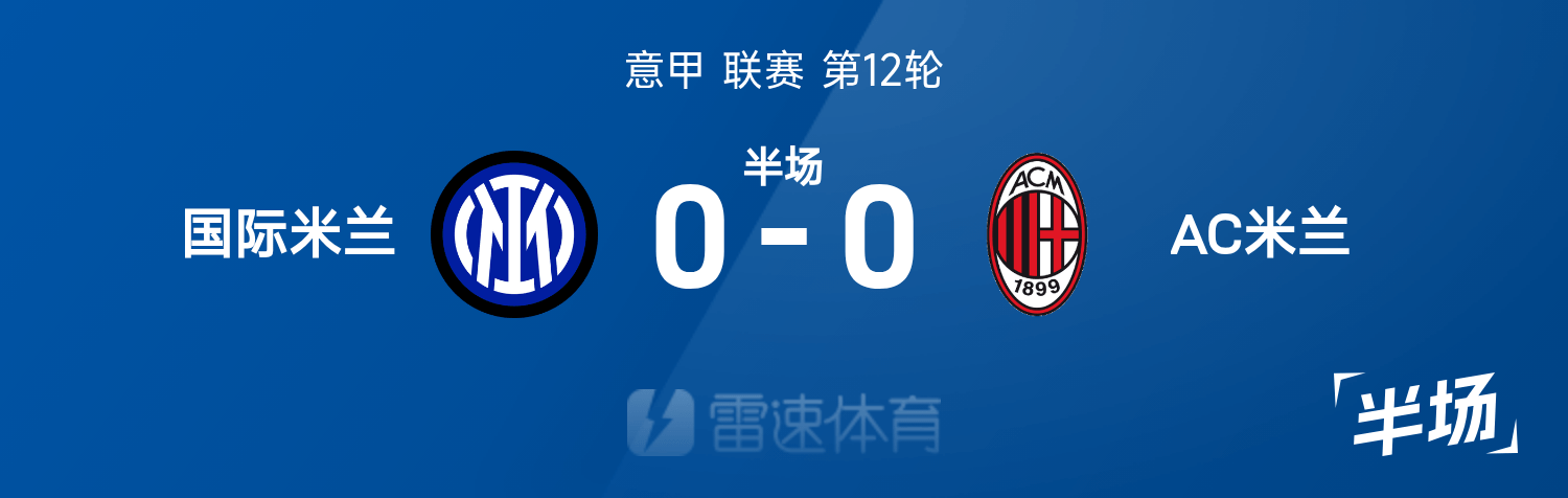 雷速體育11月24日訊 25/26賽季意甲聯(lián)賽第12輪,國際米蘭迎戰(zhàn)AC米蘭。半場戰(zhàn)罷,雙方比分暫為國際米蘭0-0AC米蘭。