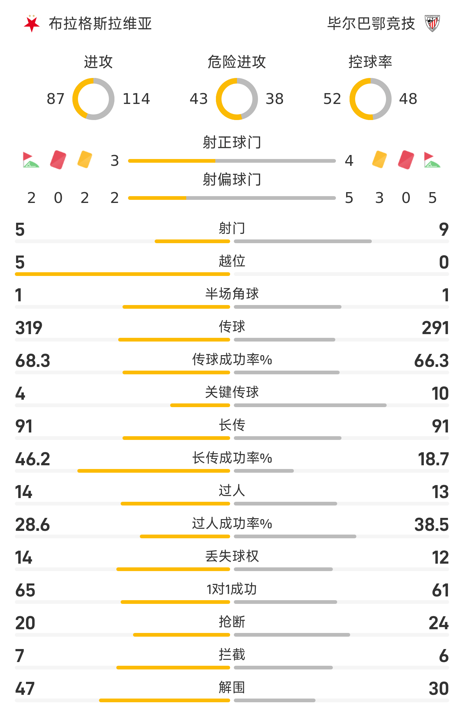 雷速體育11月26日訊 25/26賽季歐冠聯(lián)賽第5輪,布拉格斯拉維亞0-0互交白卷悶平畢爾巴鄂競(jìng)技。上半場(chǎng)桑切特兩次打門造險(xiǎn),下半場(chǎng)納瓦羅單刀被撲,斯塔尼克三次神撲救險(xiǎn)。