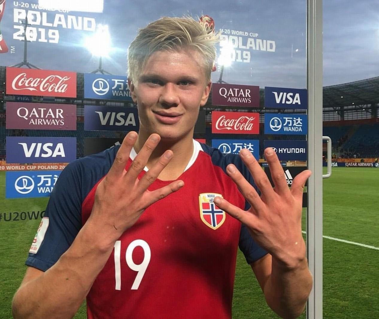 2019年5月30日,U20世界杯小組賽第三輪,挪威12-0狂勝洪都拉斯,當(dāng)時(shí)未滿19歲的哈蘭德單場9球,這幾乎是足球世界第一次記住他的名字。隨后,哈蘭德迅速進(jìn)入了世界最強(qiáng)中鋒行列。