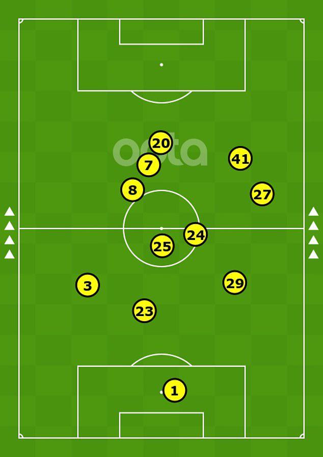 加納喬被換上場是為了在左路拉開寬度,他盡量保持高位和邊路站位,除非需要幫助庫庫雷利亞防守,加納喬還被告知要留在高位,等待里斯-詹姆斯送出精準(zhǔn)的斜長傳。