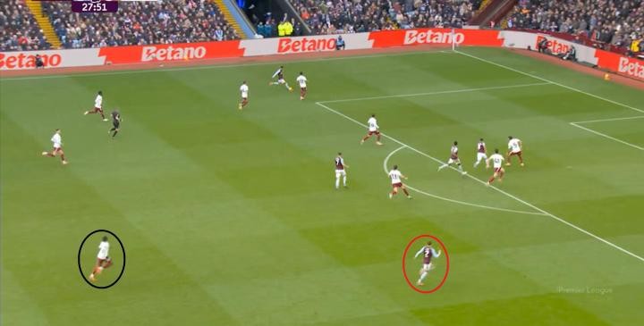 另外,阿斯頓維拉通過長傳球,也能繞過逼搶和中場,直接從前場打出攻勢:
