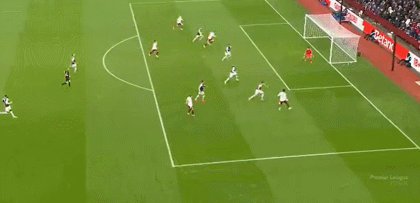 第36分鐘,?!ね欣姿菇麉^(qū)外左側(cè)斜傳禁區(qū),前點(diǎn)廷伯蹭了一下,阿森納整條后防線都沒(méi)能將球解圍,皮球來(lái)到后點(diǎn),卡什插上凌空抽射!打穿拉亞襠下破門!維拉1-0領(lǐng)先阿森納