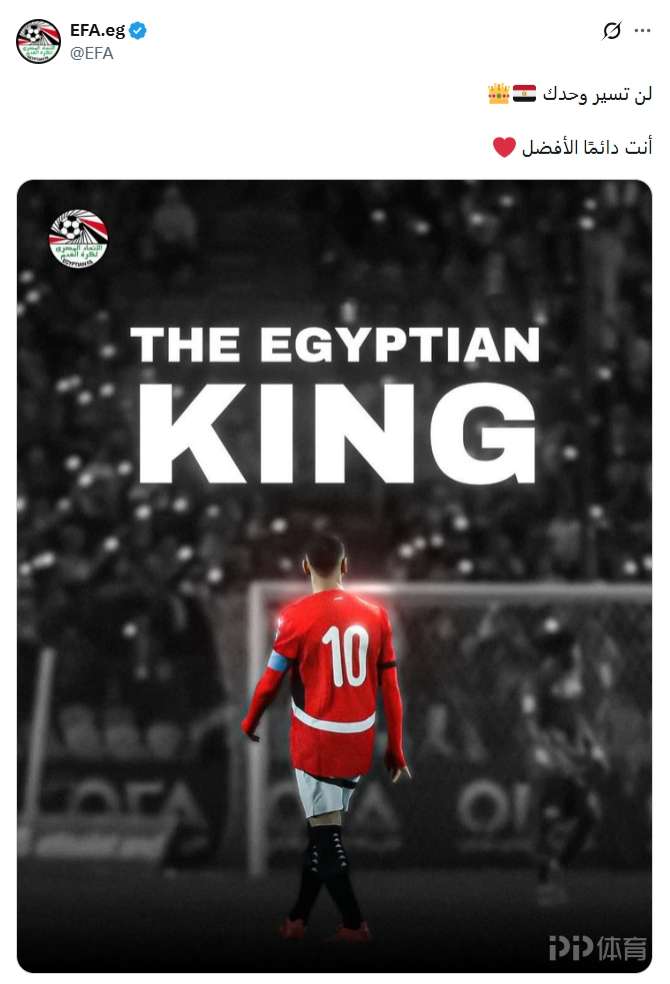 埃及足協(xié)曬出了一張以薩拉赫為主角的海報(bào),海報(bào)中配文“埃及國(guó)王”,埃及足協(xié)還附文字寫(xiě)道:“你永遠(yuǎn)不會(huì)獨(dú)行,你永遠(yuǎn)是最出色的。”