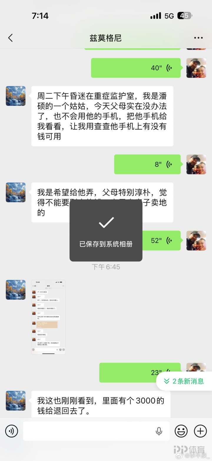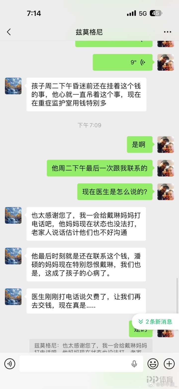 而讓家人難以釋懷的是,昏迷前一刻,小潘還一邊和我溝通,一邊向戴琳討債!善良厚道的小潘一直沒有把這件事告訴父母,他的家人也是今天打開手機之后才了解到這個情況。
