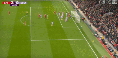 第60分鐘,薩拉赫角球助攻,?;倏祟^球完成梅開二度!利物浦2-0領(lǐng)先布萊頓