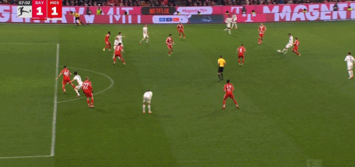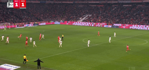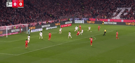 第29分鐘,格納布里送助攻,卡爾破門,拜仁1-0美因茨