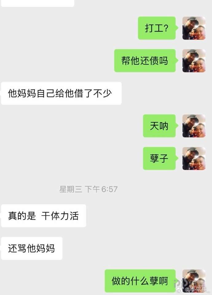 李平康曬出了多張聊天截圖表示:據(jù)戴琳曾經(jīng)身邊朋友介紹,戴琳對(duì)他的母親也是經(jīng)常進(jìn)行辱罵,他的母親為了幫他還債,也借了不少錢,還外出打工。有個(gè)曾經(jīng)年收入數(shù)百萬(wàn)的兒子,一把年紀(jì)了還要打工還債,甚至遭受辱罵虐待,也是挺讓人唏噓的。我有一個(gè)建議,懇請(qǐng)大家不要罵戴琳的母親了,雖然有教子無(wú)方之責(zé),但也是很讓人同情了!