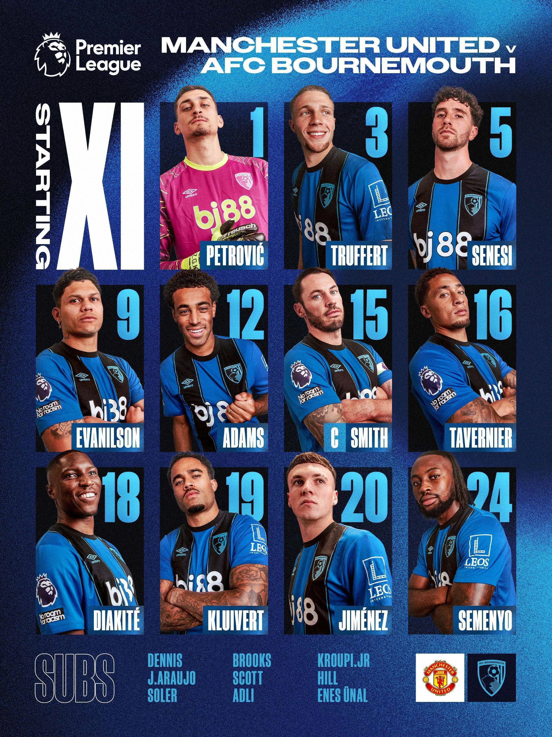 北京時間12月16日凌晨4點,英超聯(lián)賽第16輪展開一場焦點戰(zhàn)役,曼聯(lián)對陣伯恩茅斯。賽前,雙方公布首發(fā)陣容。