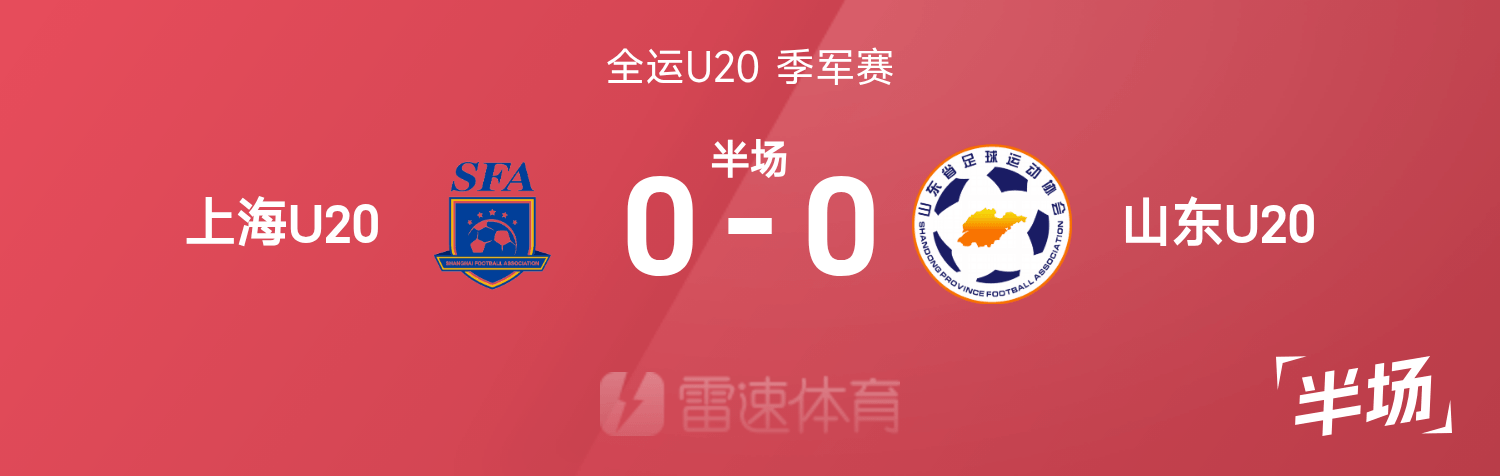 雷速體育11月12日訊 25賽季全運(yùn)U20季軍賽,上海U20迎戰(zhàn)山東U20。半場(chǎng)戰(zhàn)罷,雙方比分暫為上海U200-0山東U20。